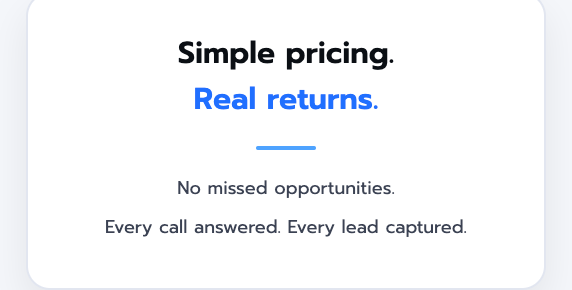 Our AI Receptionist is designed to pay for itself by capturing calls your business would otherwise miss.
